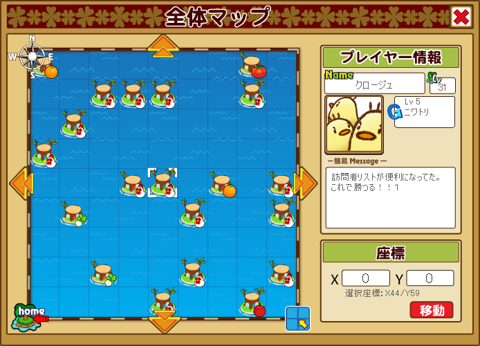 他人の牧場に行くには、お手伝い履歴から飛ぶか、全体マップから飛べばどこにでも行ける。